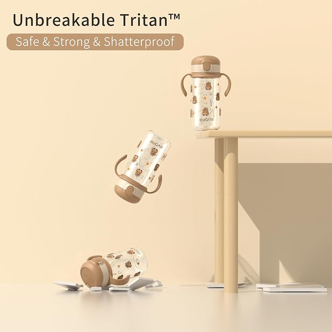 Evorie Tritan Spill Proof Toddler Straw Sippy Cup, 10 oz for Baby and Toddlers 1-3 Years Old, No Spill Straw Water Bottle with Removable Handles, Ideal for School, BPA-Free, Capybara (NEW)