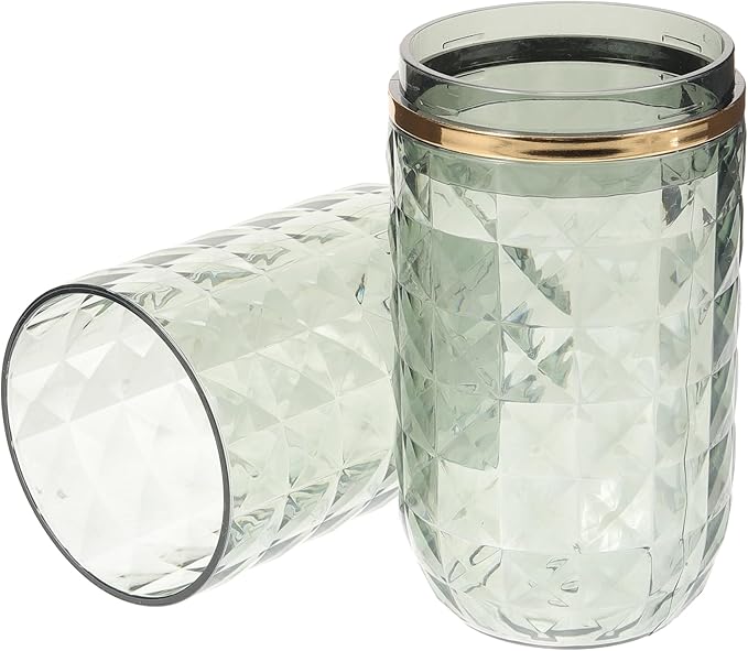 - Design features: Beautiful diamond-patterned glass structure, with 2 parts - a holder with lid and a matching plastic cup, which can be used for multi-functional bathroom storage