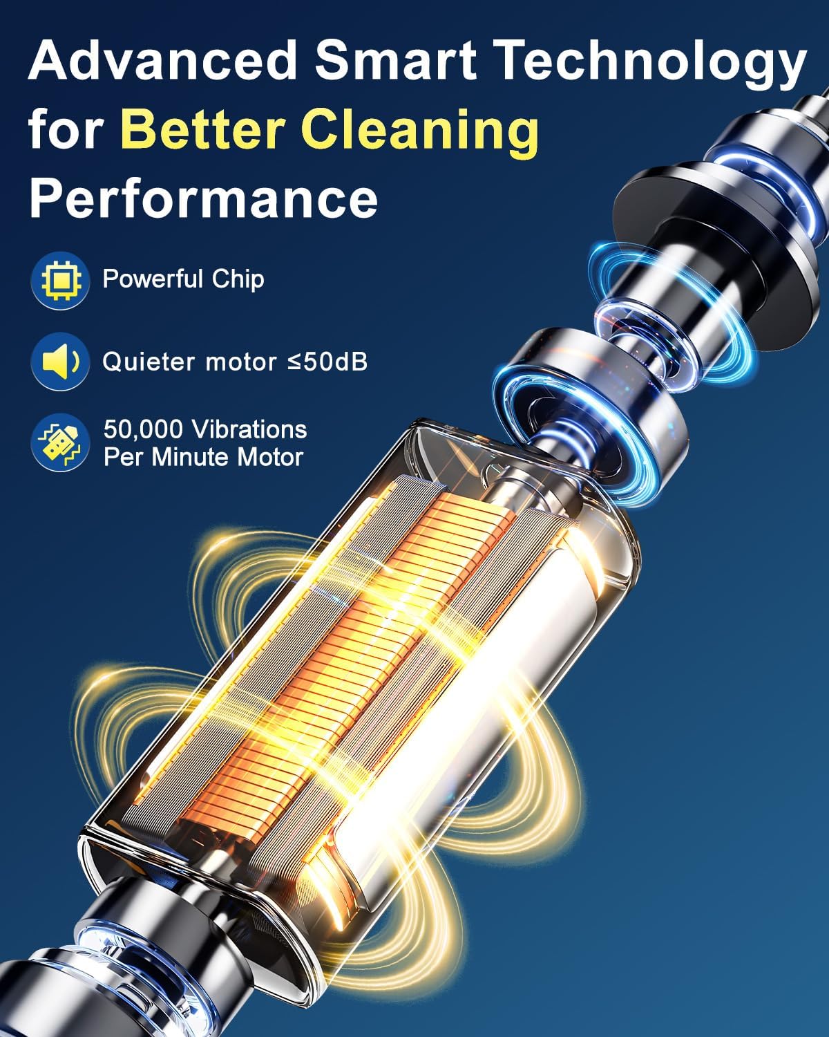 - 【Clean 7X More Plaque】Rtauys Cordless Electric Tooth Brush comes with a powerful motor capable of rotating 50,000 times per second, which cleans 700% more stains than a regular toothbrush, focusing on every tooth and every crevice.