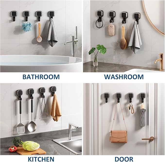 - Widely applicabla: These creative wall hooks provide the best organization solution for your bathroom, kitchen, basement, window, mirror and more place for hanging shower towels, sponges, bath brush, coats, bags, hats, keys, kitchenware, bath accessories etc. Hang whatever and wherever you want