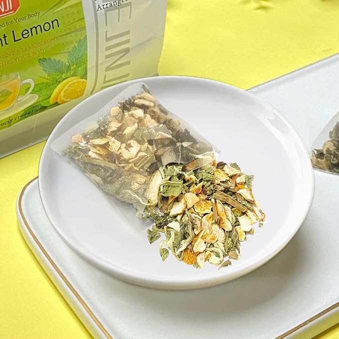 XIEJINJI Peppermint Lemon Tea Bags, 4.2g x 40 Count (5.9 oz), 100% Natural Lemon & Peppermint Leaves, No Flavoring - No Additives - Caffeine Free, Eco-Conscious Pyramid Clear Filter Teabag