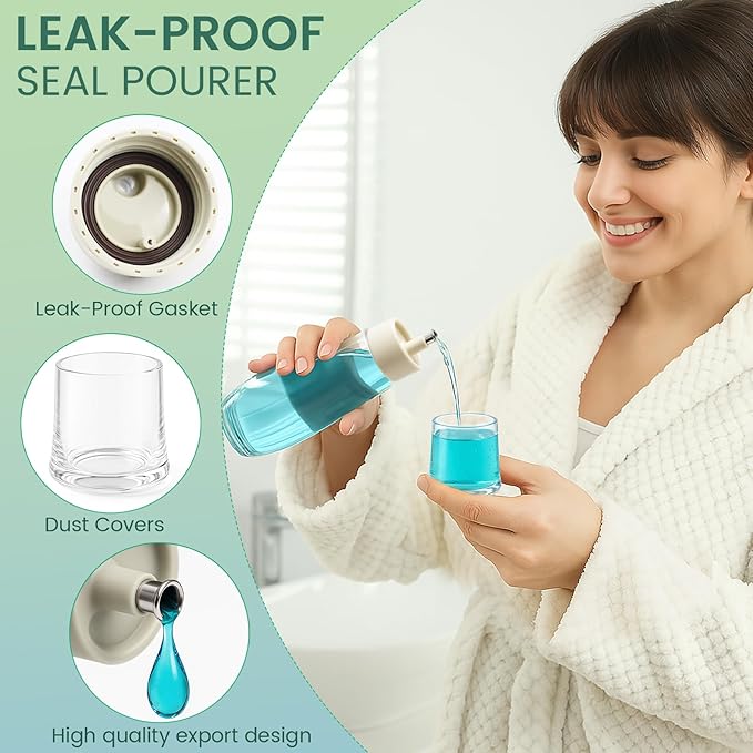 - Convenient Cup & Lid Combo: This bathroom mouthwash decanter comes with a built-in mouthwash cup, eliminating the need for a separate purchase. When not in use, the cup doubles as a dust cap, safeguarding the bottle from dust and debris and maintaining its cleanliness and hygiene.