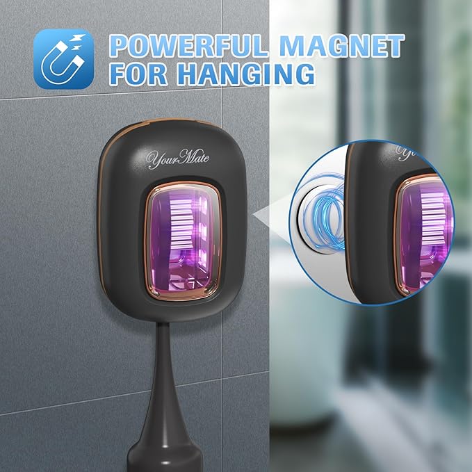 YourMate Rechargerable UVC Toothbrush Sanitizer Case Pro Compatible with Electric Toothbrush Heads/Regular Toothbrushes Travel Toothbrush Covers Case Magnetic Holder for Houshold/Traveling Black