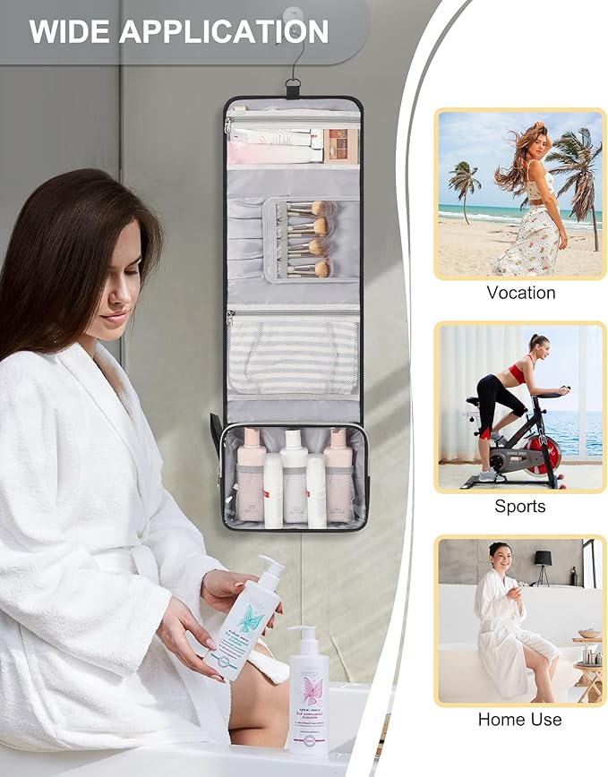 - 【MULTIFUNCTIONAL TRAVEL BAG】Multiple compartments for different storage demand. The Hanging Toiletry Bag is great for overnight staying, a long journey, gym shower and outdoor activities as an organizer, washbag, necessories, beauty case and toiletries bag. Your loyal companion in daily life