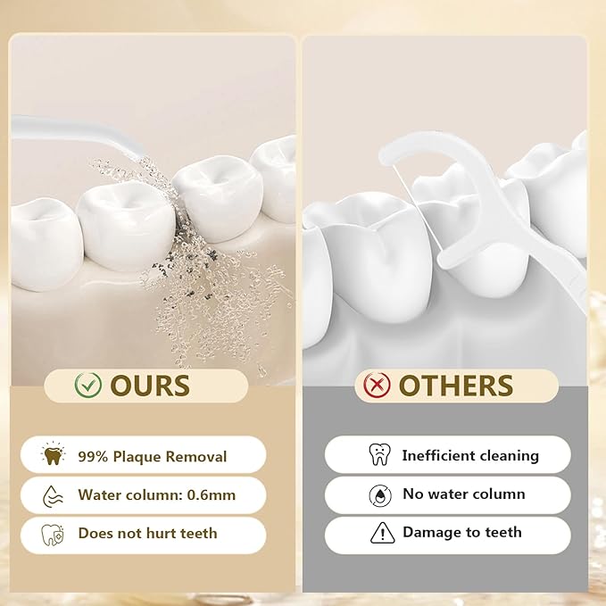 - 【Deep Clean】electric flosser is equipped with a powerful motor that generates 1,800 high-frequency pulses per minute, delivering a robust water pressure range of 60-120 PSI. Its 360° rotating nozzle allows effortless access to hard-to-reach areas, effectively removing food debris and dental plaque hidden between teeth and in gum pockets to promote optimal gum health.