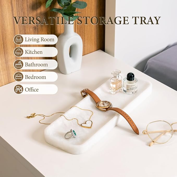 - 【Easy To Clean】The rectangle tray measures 11.8 x 3.9 x 0.7 inches, perfect for organizing and displaying your daily essentials. The marble vanity tray is easy to clean by simply wiping with a damp cloth to remove dirt and stains. Four non-slip pads on the bottom of the tray protect the marble from sliding and scratching the surface