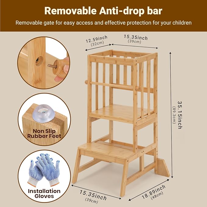 - Made to last: This toddler kitchen standing tower is made from solid natural bamboo with a child-safe, meticulous finish that prevents scratches and scuff marks, ideal as kids stool for kitchen