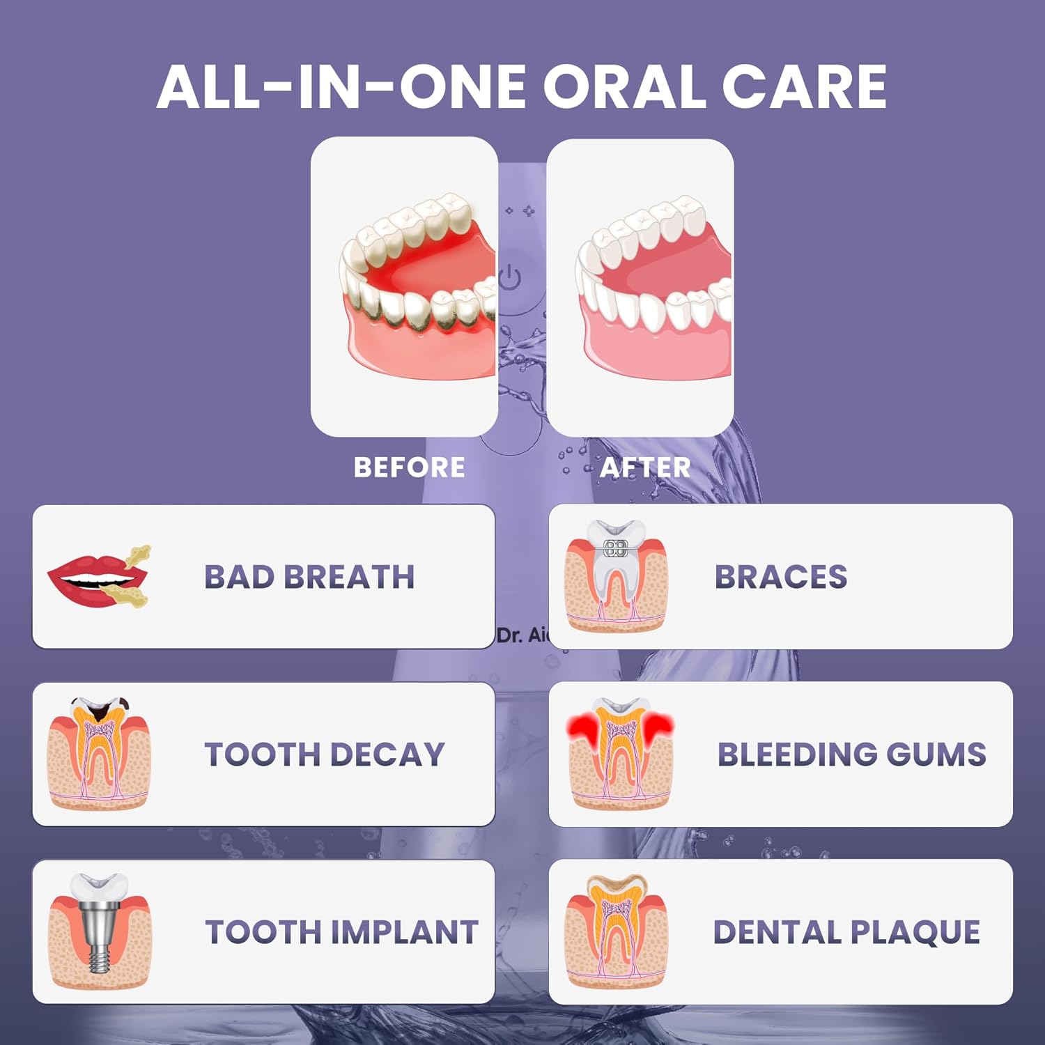 - General Advantages & Uses: The Dr. Aid Water Flosser is designed to make oral hygiene simple and effective. Using a targeted water stream, this water dental flosser removes plaque, food particles for a deeper clean. Overall, water floss technique is considered to be one of the best water flossers for teeth cleaning and flossing. Perfect as a water flosser for braces or a tonsil stone water flosser, it helps maintain healthy gums and fresh breath. This versatile oral irrigator water flosser is suitable for daily use, offering a thorough clean for teeth and gums. Whether you need a dental flosser or a waterflosser, it’s the ideal solution for all-around oral care.