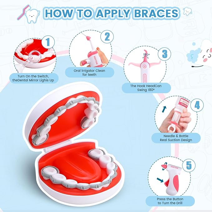 - š ššš šššššš šššššššššš-Includes adjustable kid-sized lab coat,dental models, retainer, dental braces, tooth decay stickers etc. for immersive pretend play ā great for sibling teamwork or playdates!