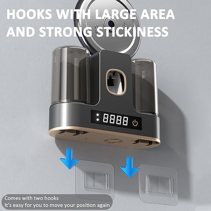 - EASY TO INSTALL: The toothbrush holders wall mounted is glued to the wall with a large adhesive backing, and it only needs to stand for more than 24 hours to easily and securely hang on the wall, and the special super glue can withstand up to 10 kg of heavy loads. In addition, we will add two adhesive stickers so that you can move the toothbrush sterilizer again