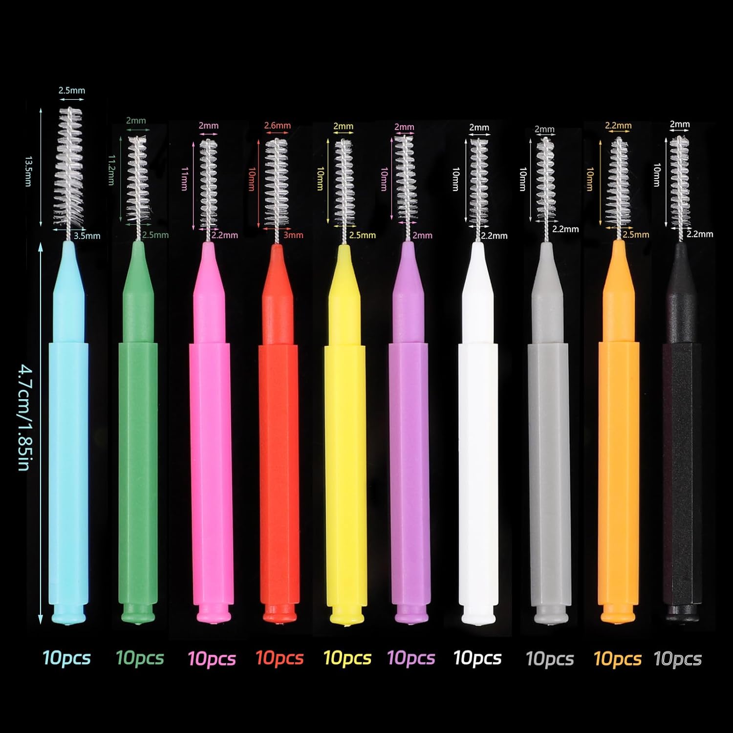 100 Pcs Interdental Brushes, 6 Sizes Braces Flossers for Cleaner Braces Brush Soft Dental Brushes Toothpicks Dental Floss Picks Dental for Braces Oral Cleaning(10 Colors)