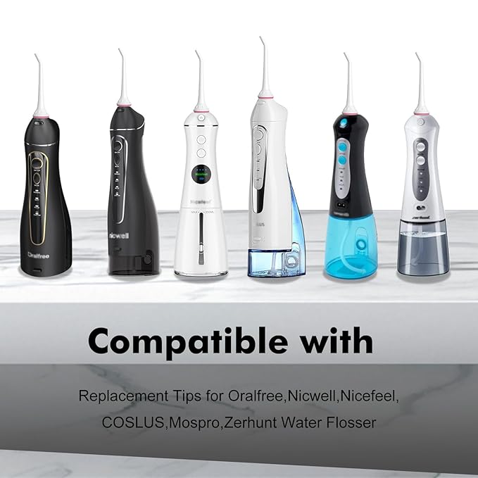 - 【Compatible With】:These Jet Tips are well compatible with Nicwell,Oralfree,Nicefeel,COSLUS,Mospro, Zerhunt,McNaval water flosser.These nozzles can gently and effectively remove residues in the gaps between teeth, allowing you to easily clean hard-to-reach areas and keep your gums and teeth healthy!