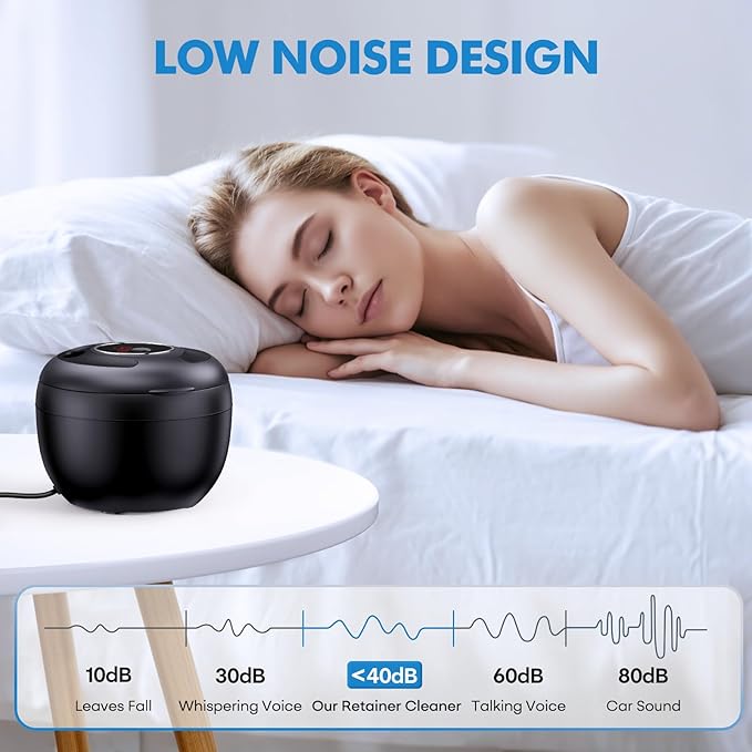 - 【Ultrasonic Cleaning】Utilizing 45,000Hz high-frequency ultrasonic technology, the retainer cleaner generates millions of micron-scale cleaning bubbles per second, penetrating deep into the tiniest gaps to remove 99.99% of stubborn stains. High-frequency vibration ensures efficient cleaning while being gentle and harmless to the dental appliances. Ideal for dental appliances (retainers, dentures, aligner, mouth guards, night guards, toothbrushes) and even jewelry & accessories.