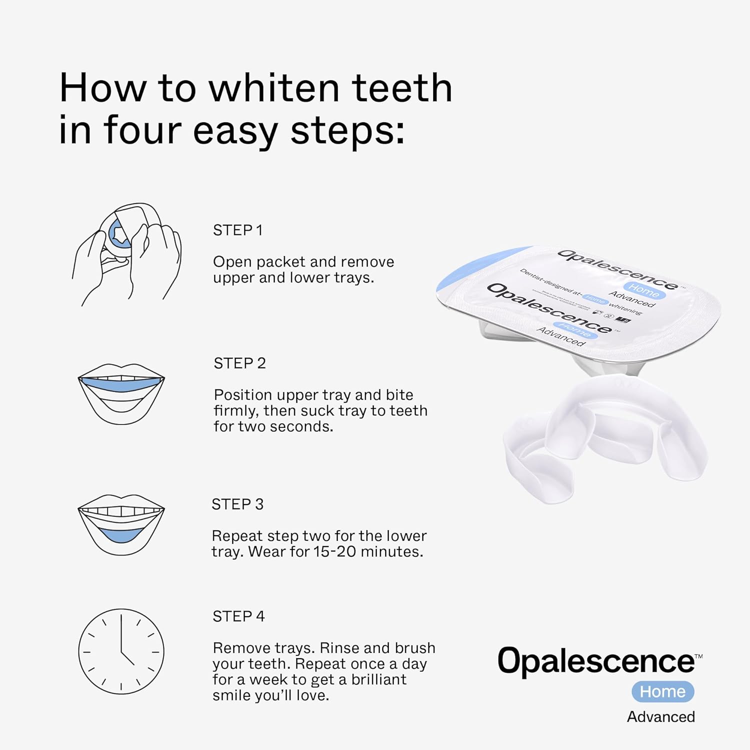 - DENTIST-DESIGNED WHITENING TRAYS 15%: Created by dental experts, Opalescence Home Advance features Opalescence teeth whitening gel prefilled trays designed for safe and effective teeth whitening no dental visit needed. Seriously works to deliver a brilliant smile.