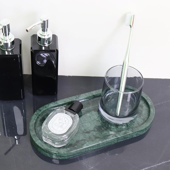 Natural Marble Tray, Oval Vanity Decorative Tray for Bathroom Counter, Countertop Stone Organizer, Catchall Tray for Kitchen, Perfume, Candles, Jewelry Dish Decorative Tray
