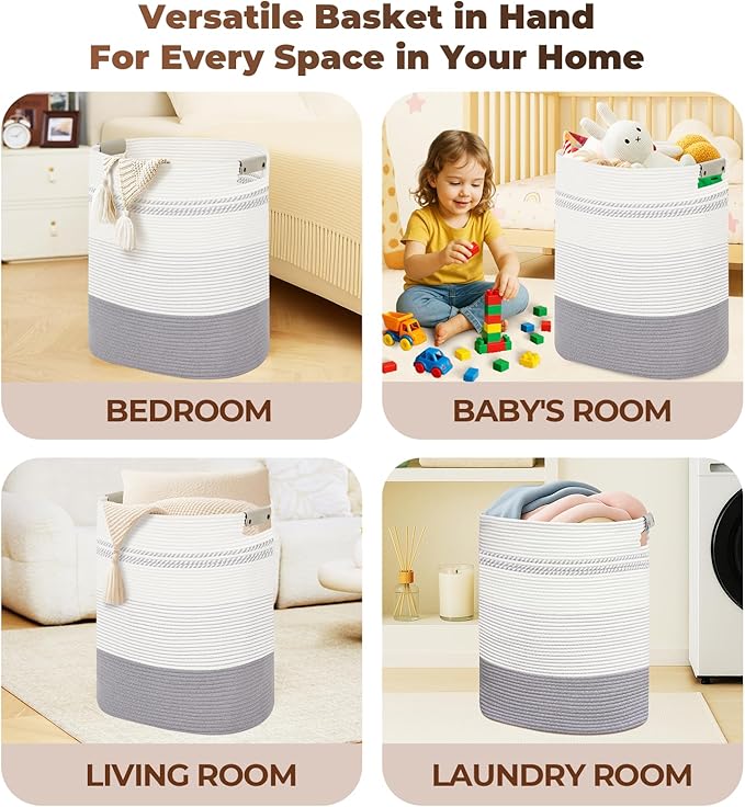 - Flexible Home Use: Ideal as a cesta para ropa sucia or canasta para ropa sucia, this rope basket serves multipurpose functions. It’s perfect as a woven laundry basket, offering a distinctive touch to both functional and decorative applications.