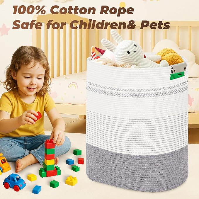 - 100% Cotton Handcrafted Design: Our blanket basket is a stylish clothes hamper made from 100% cotton, providing a soft yet durable solution for your storage needs. This handcrafted storage basket complements any decor with its natural aesthetic.