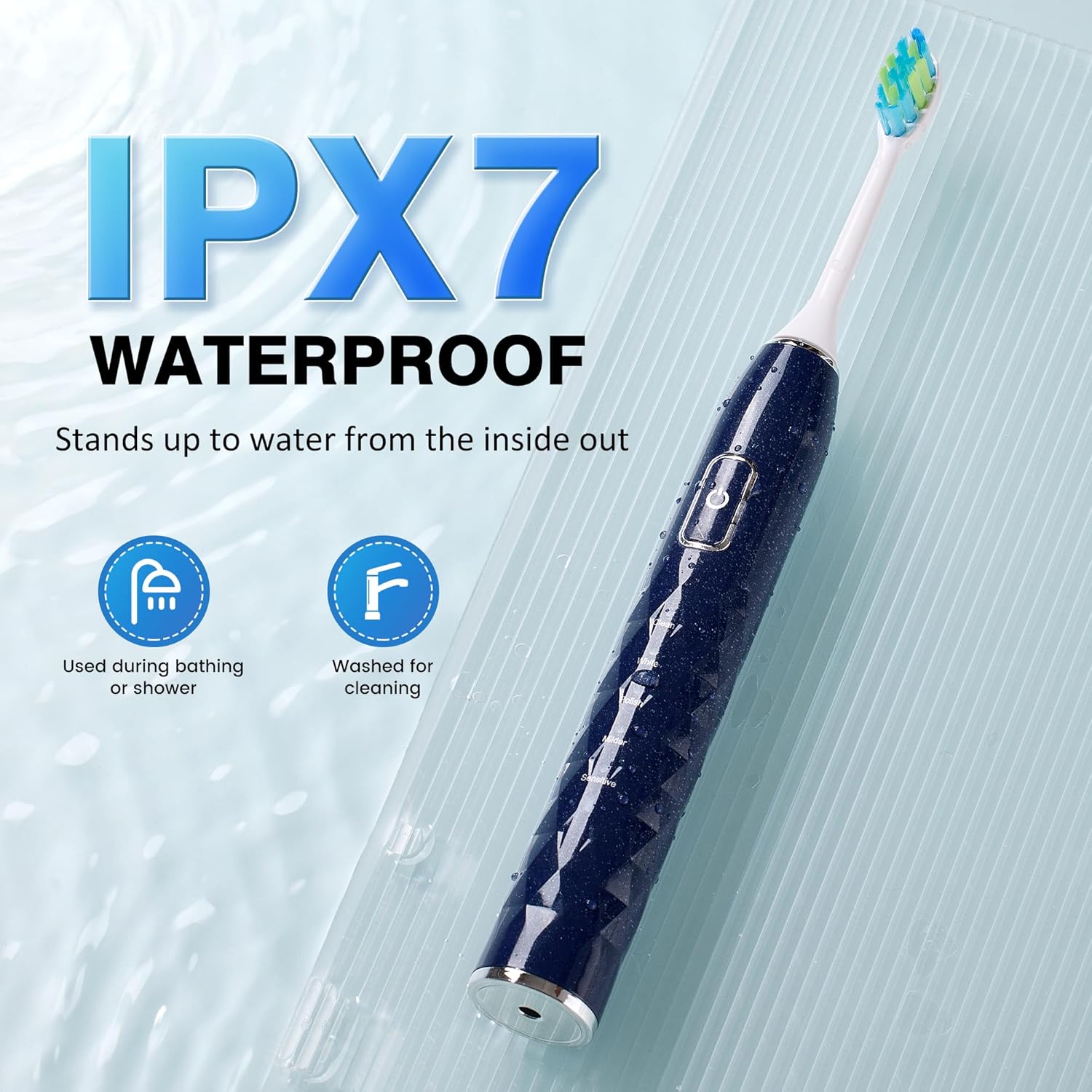 - 3.Sonic electric toothbrush waterproof rating IPX7 Whether in the shower or bath can enjoy brushing time Noise is less than 55 decibels is a suitable for adults and children family use of electric toothbrush