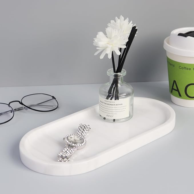 Natural Marble Tray, Oval Vanity Decorative Tray for Bathroom Counter, Countertop Stone Organizer, Catchall Tray for Kitchen, Perfume, Candles, Jewelry Dish Decorative Tray