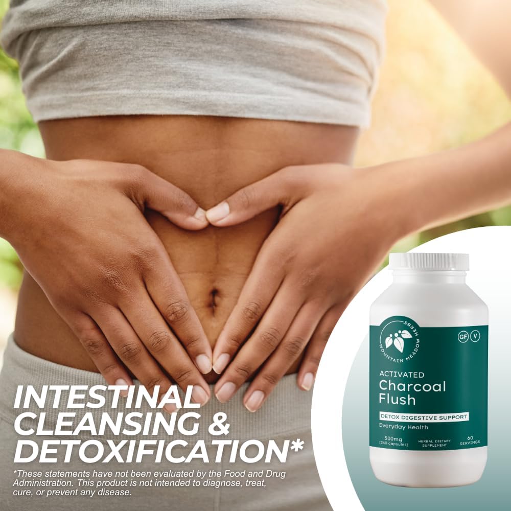 Mountain Meadow Herbs Activated Charcoal Flush – Natural Detox Cleanse Supplement for Digestion, Gas Relief, and Bloating Support – Activated Charcoal Capsules for Internal Cleansing 240ct