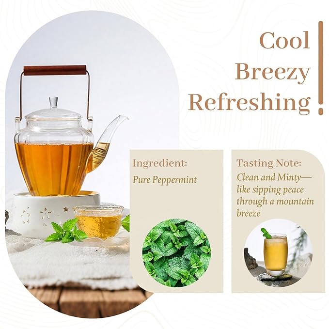 - BRIGHT, SMOOTH, AND NATURALLY INVIGORATING: Pure peppermint leaves deliver a crisp, cooling sip with a soft finish—refreshing enough for mornings, soothing enough for nights.