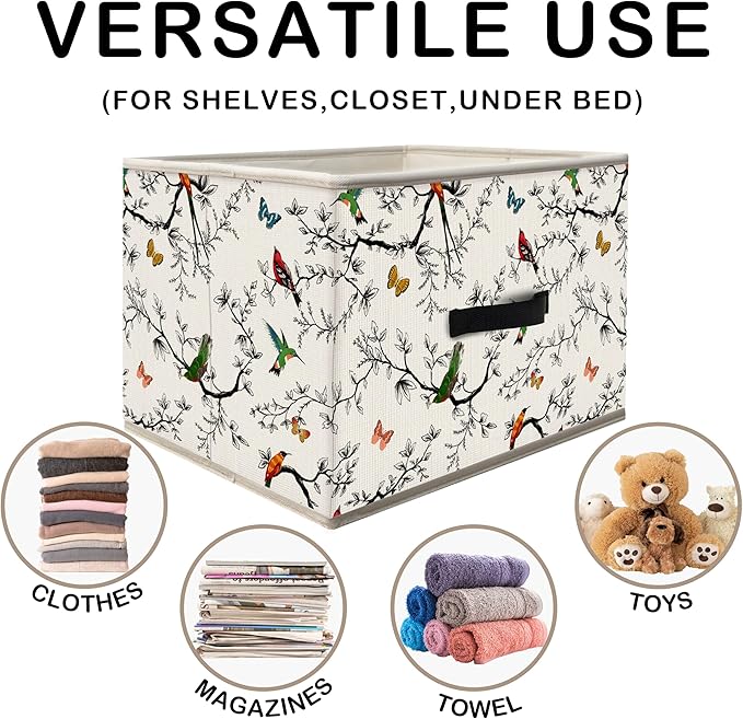 Nogrit Nature Bird Butterfly Storage Bins Box, Toybox for Girls, Colorful Branch Birds Foldable Baskets Organizer Container with Handles for Kids Girls Bedroom Bathroom Clothes Toys Books