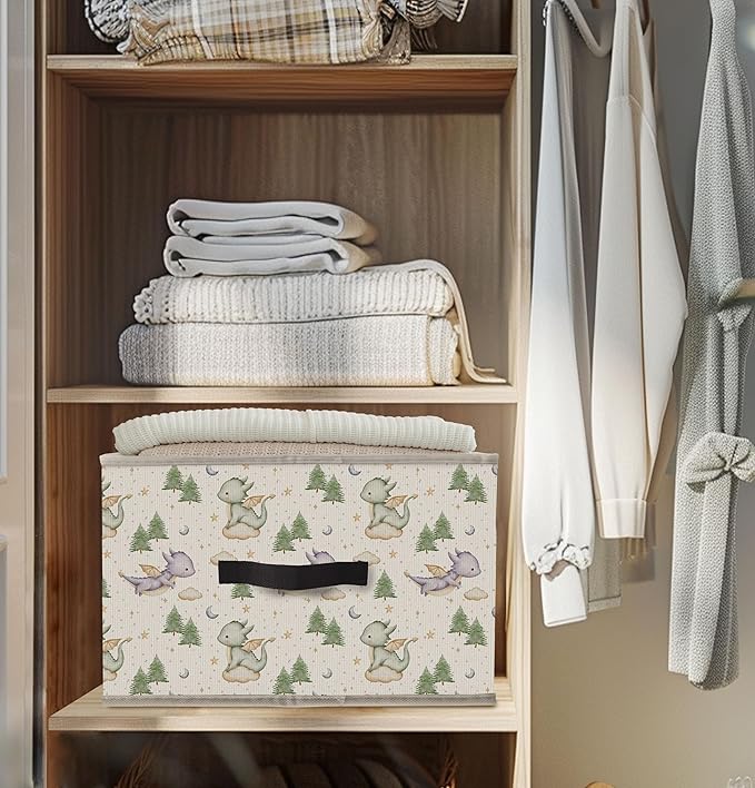 Nogrit Dinosaur Nursery Storage Bins Box, Toybox for Boys, Green and Purple Woods Dinosaur Foldable Baskets Organizer Container with Handles for Kids Boys Bedroom Bathroom Clothes Toys Books