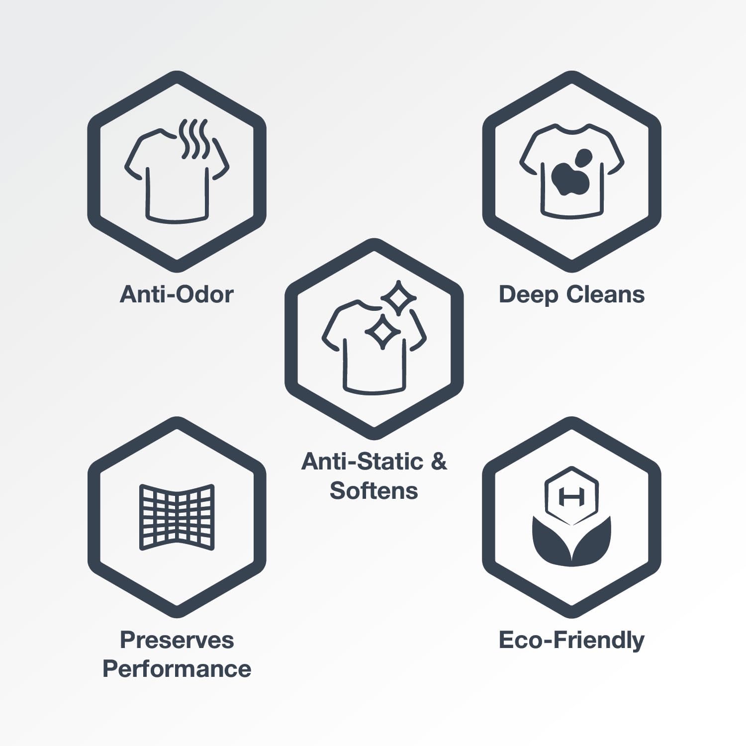 - POWERFUL LIQUID FORMULA: Traditional laundry soap and laundry pods leave leftover residue behind that corrode and clog your high-performance gear leaving them smelly and reducing their wickability. Hex Performance liquid active wear laundry detergent penetrates today’s ultra tight-knit performance fabrics, like your favorite yoga tops, leggings, sport bras, or compression shorts.