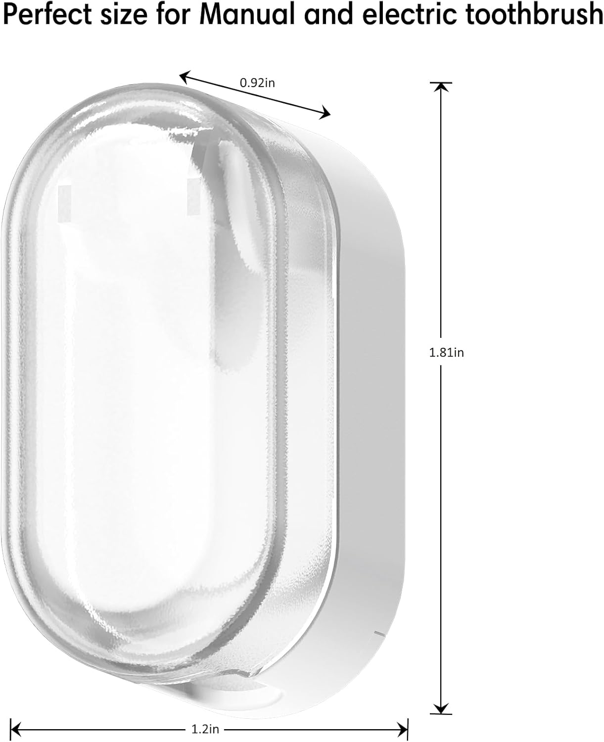 - PREMIUM MATERIAL - Toothbrush head cover made of ABS Plastic Material. Toothbrush Head Cover Case Size : 0.92" x 1.2" x 1.81" (L x W x H). It can carry up to 0.33 lbs. Suitable for children's toothbrush/adult toothbrush/ electric toothbrush.