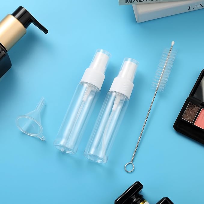 - Useful Travel Accessories: This is a nice assortment of travel containers in a useful zip case. ( Come in 4 Travel Bottles+4 Travel Jars+2 Spray Bottles+2 Scoopers+1 Funnel+1 Clean Brush + 1 Page Label + 1 Clear Toiletry Bag ) Multiple ones allow you take along different beauty products and toiletries according to your requirement