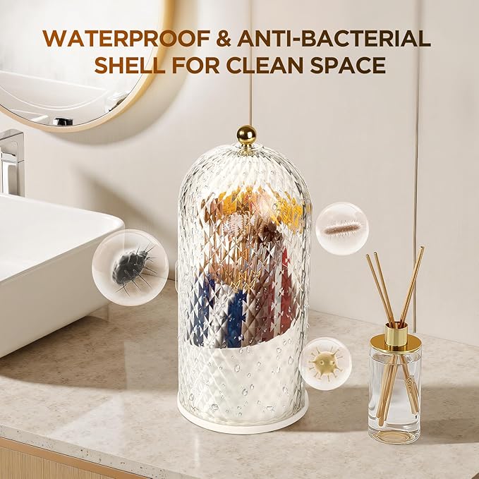 - 💧【EASY TO CLEAN】The makeup brush holder with lid cleans easily with premium ABS plastic and stays secure with a non-slip base.