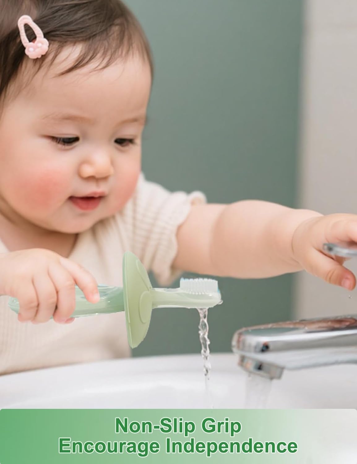 - 【BABY TOOTHBRUSH & BABY TEETHER】This is not only an infant toothbrush but also a baby teether. It can also be a baby tongue cleaner. The baby training toothbrush can effectively remove oral stains such as milk and food residues on the baby's tongue and gums, which can help develop good habits from an early age. It is tailor-made for babies to make the first brushing experience a good one.