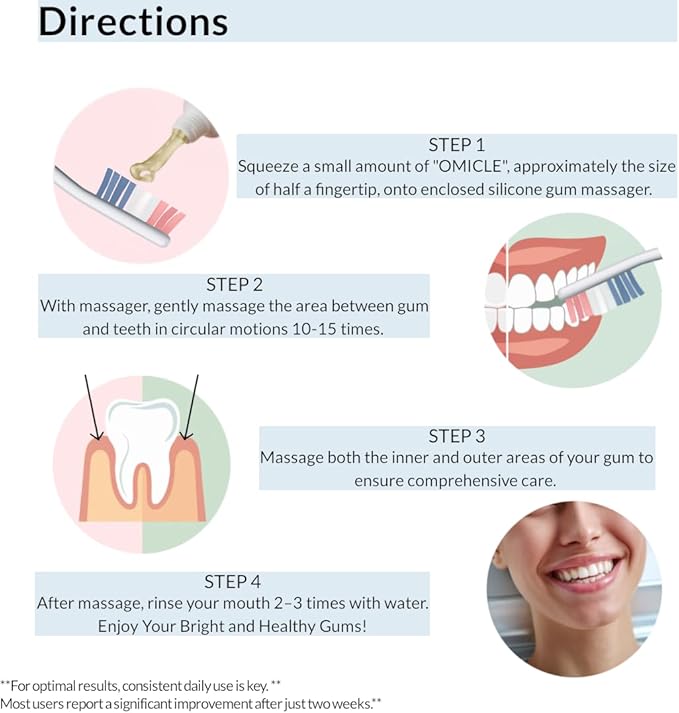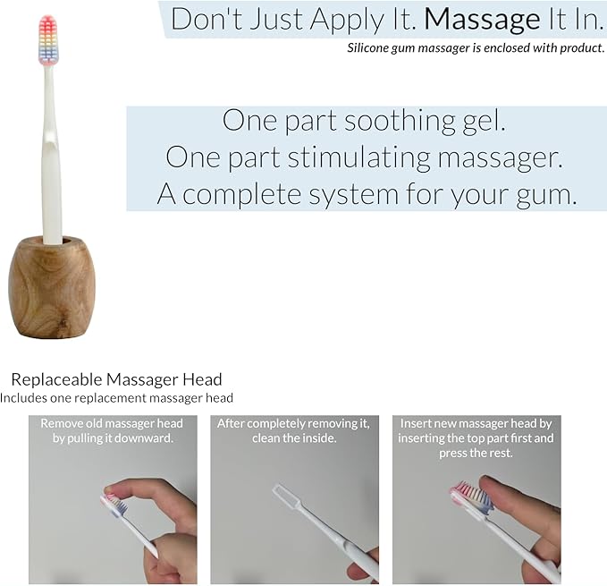 - ENHANCE YOUR ROUTINE with Gentle Massager – Maximize your gum care experience. Our custom-designed silicone massager features soft bristles that gently stimulate gums while delivering our soothing formula effectively. This dual-action approach promotes a vigorated oral feeling and helps you get the most out of every application.