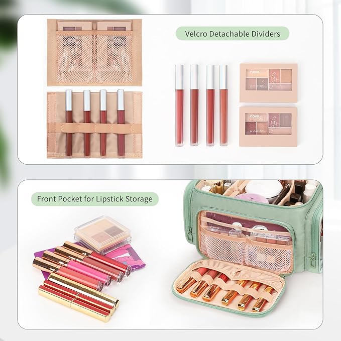 - Large Capacity Cosmetic Bag - Our makeup bag is spacious and deep enough to hold bottles vertically. With two removable dividers to better organize all your cosmetics and personal belongings, you can also adjust the space as needed!