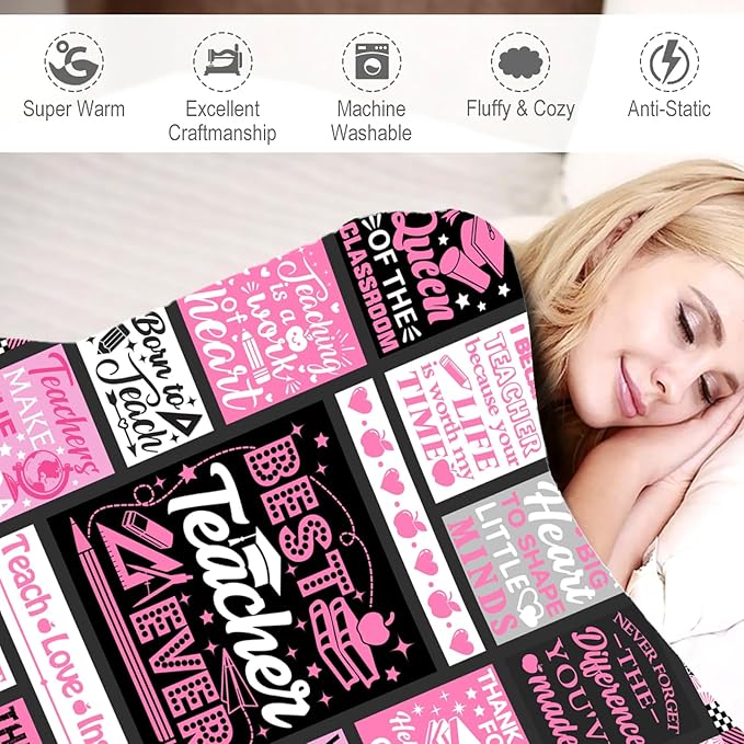 Teacher Gifts Blanket for Women Teacher Appreciation Throw Blankets Plush Flannel Bedding Mothers Day Teachers Gifts for Women Retirement Graduation Birthday Party Decorations 60"X50"