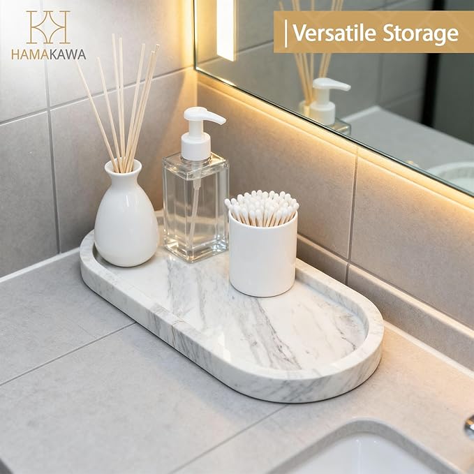 - Genuine Natural Marble Material: HAMAKAWA Marble tray is crafted from 100% natural Volakas White Marble. Each piece is unique, featuring the natural, cloud-like grey veins characteristic of the stone. It boasts high density, excellent wear resistance and sturdiness, resists deformation and cracking, and ensures a long service life