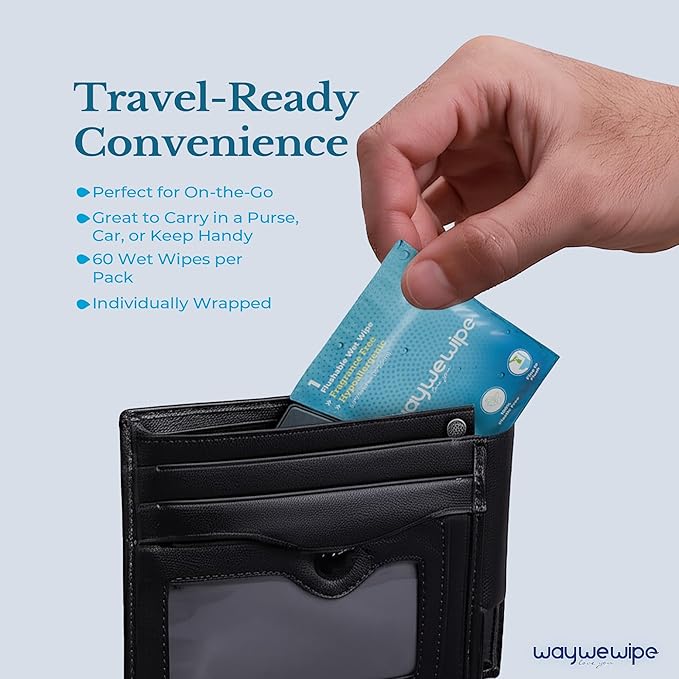 On-The-Go Flushable Wet Wipes, 60 Count XL Individually Wrapped Adult Wipes, Hypoallergenic 100% Plant Based Septic Safe, Travel Size Cleansing Cloth for Men & Women, Fragrance Free (60 Ct)
