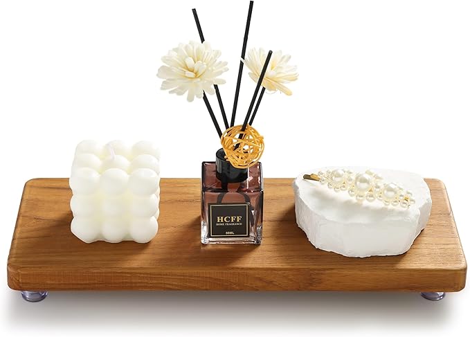 - **3. Versatile Multi-Use Design** Stylishly display skincare, candles, plants, or perfume. Effortlessly transitions from a **pedestal stand** in bathrooms and kitchens to a chic organizer for entryways or vanities. The **teak wood riser** blends function with timeless elegance.