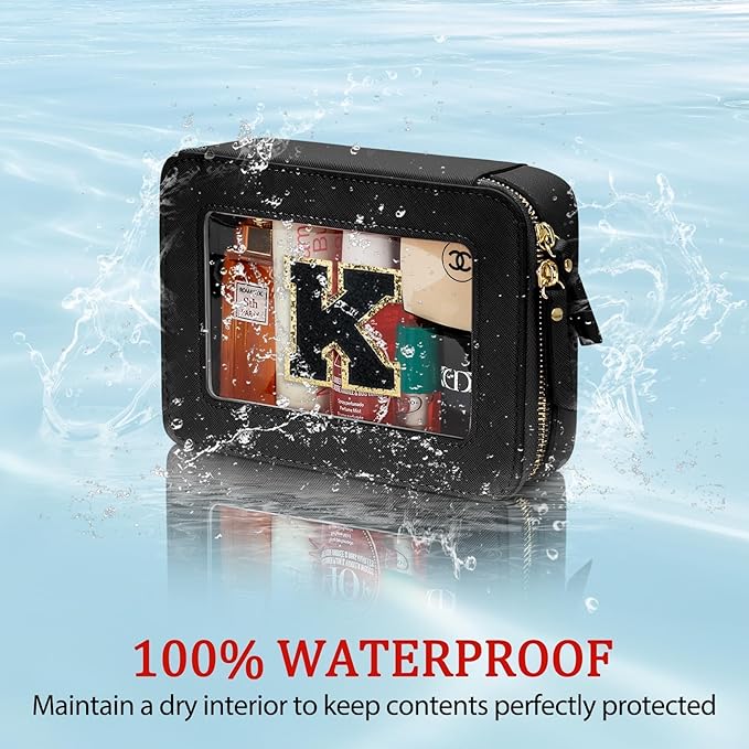 Initial Travel Toiletry Bag - Cosmetic Bags for Girls with Zipper, Clear & Potable Makeup Bag for Travel, Cosmetic Pouch Perfect Gifts for Graduation (Black, K)