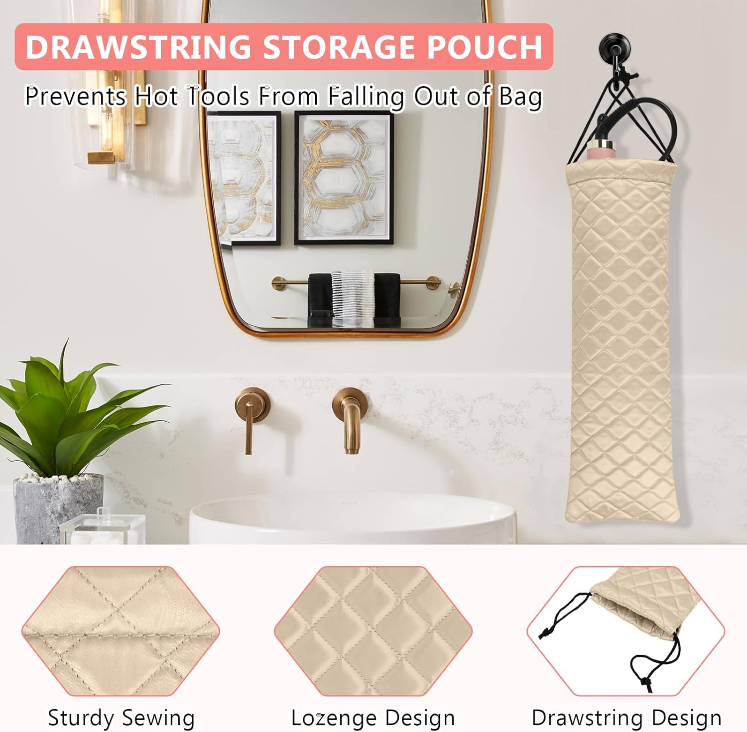 • Drawstring Closure Design: The intuitive drawstring closure design offers quick and effortless access to your hair tools while keeping them safely tucked away, ensuring your hair tools stay securely inside and preventing any accidental slips