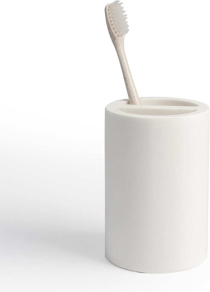 White Toothbrush Holder for Bathrooms – Modern Resin Countertop Organizer with Slots, Compact Toothbrush and Toothpaste Storage for Vanity, Hotel, Airbnb (White)