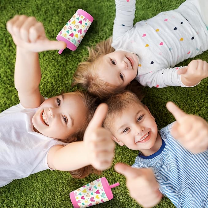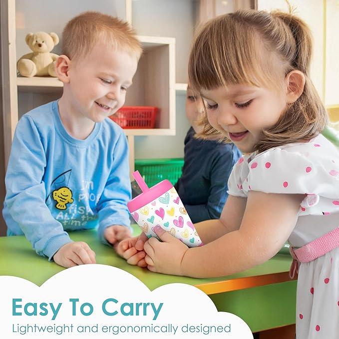 Kid Insulated Stainless Steel Tumbler with Silicone Straw, 12oz Sippy Cup for Kids (Playful Hearts)