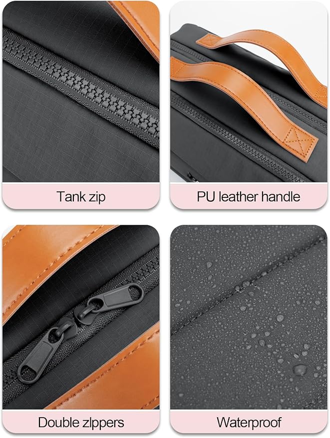 - Durable & Reliable: Made of premium waterproof fabric which is easy to clean and tear-resistant. Stress points are all reinforced, durable tank-style zippers ensure long lasting usage. The high-quality PU leather handle provides a soft and comfortable grip.