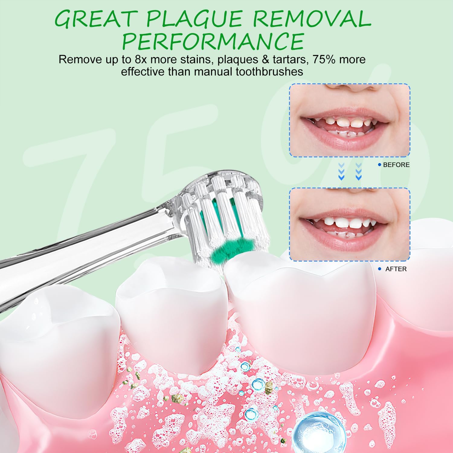 - DEEP CLEANING FOR TINY TEETH: Curved bristle tips reach back molars and tight spaces and clean significantly better than manual brushing.
