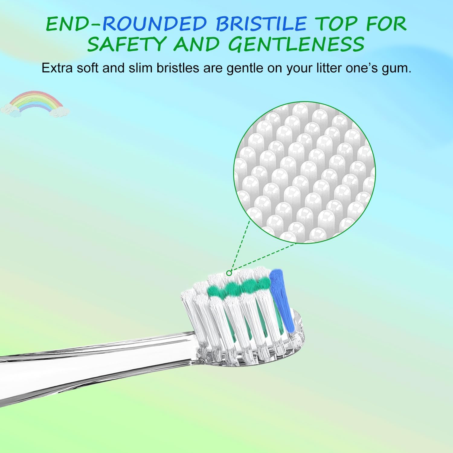 - KID-SAFE DESIGN WITH DUPONT NYLON BRISTLES:Extra-soft DuPont bristles gently clean without irritating gums. Rounded tip technology protects enamel and massages gums during brushing. 100% BPA-free materials