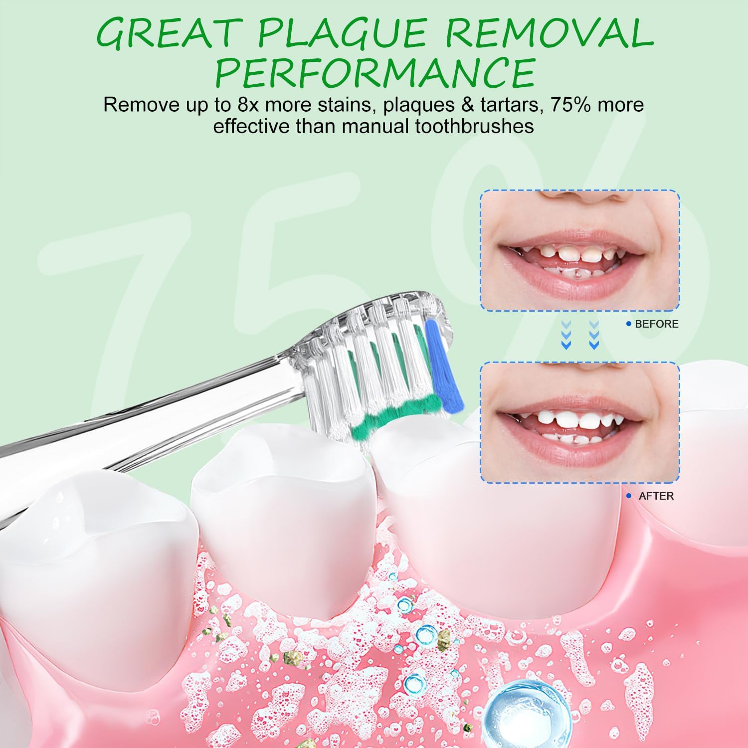 - DEEP CLEANING FOR TINY TEETH: Curved bristle tips reach back molars and tight spaces and clean significantly better than manual brushing.