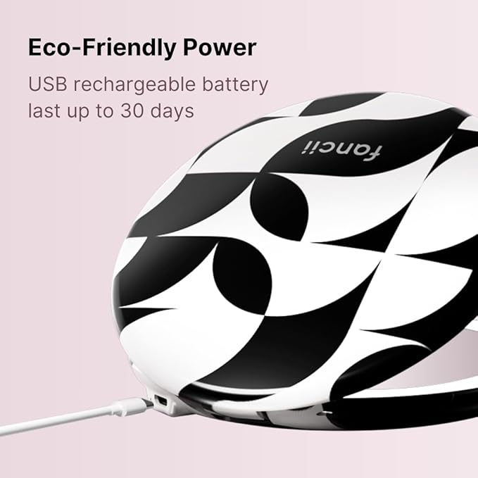 Fancii Taylor Compact Travel Makeup Mirror with Lights, 10x /1x Magnifying, Rechargeable, 3 Light Modes, Dimmable - Small Lighted Handheld Purse Mirror, Double Sided, for Gifts (Mellow Monochrome)