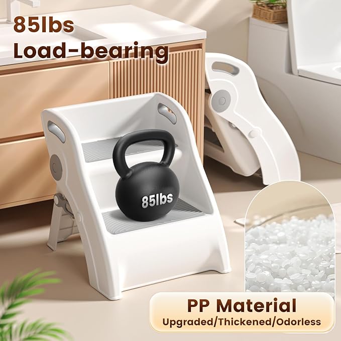 - Non-Slip Surface Design: Larger stepping area with soft rubber edges for secure footing, supports to maximum 100lbs, optimal load-bearing is under 100lbs. The foldable step stool for toddlers has wide-base structure, anti-tip feet, and non-slip pads on this kids step stool and provide maximum stability, making it a safe standing stool for curious toddlers aged 1-5