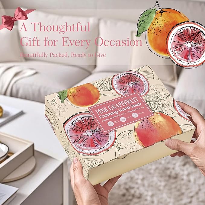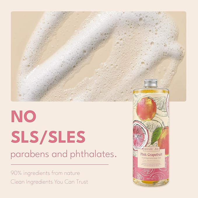 - 【Refreshing Scents Collection】Brighten your day with the crisp, juicy aroma of Pink Grapefruit. Infused with natural grapefruit extract, this foaming hand soap delivers a light, skin-loving lather that gently cleanses without drying. A refreshing boost that’s as uplifting as it is eco-conscious.