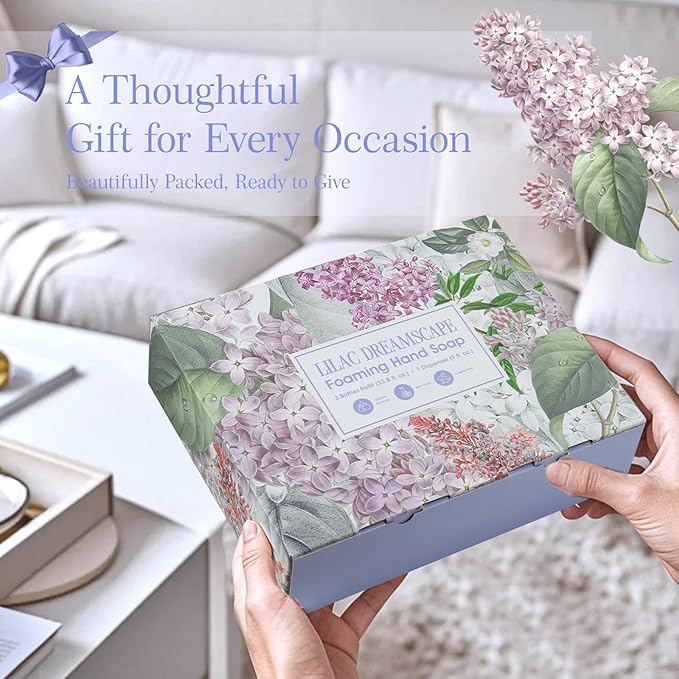 - 【Soft Floral Scents Collection】Embrace the soft, soothing scent of lilac. Infused with natural floral extracts, this gentle foaming hand soap offers a lush lather and calming clean—crafted for delicate skin and an effortlessly elegant atmosphere at home.